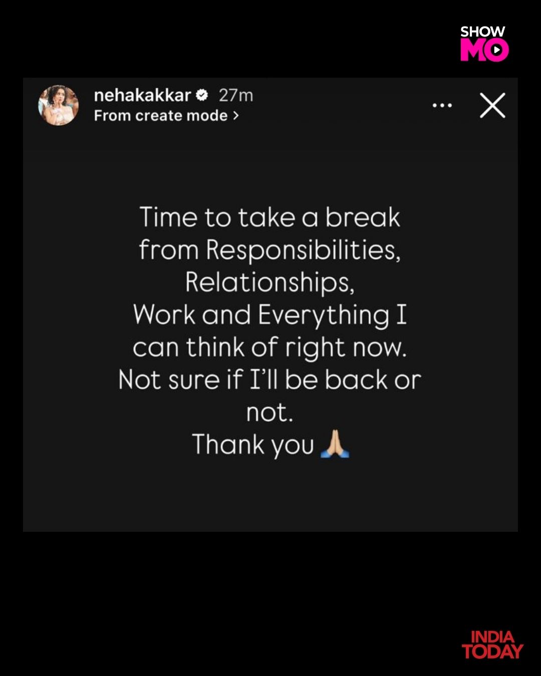 Singer Neha Kakkar sent social media into a frenzy on Monday when she shared a series of emotional Instagram stories announcing an indefinite break from work, relationships, and public life — only to delete them minutes later.
